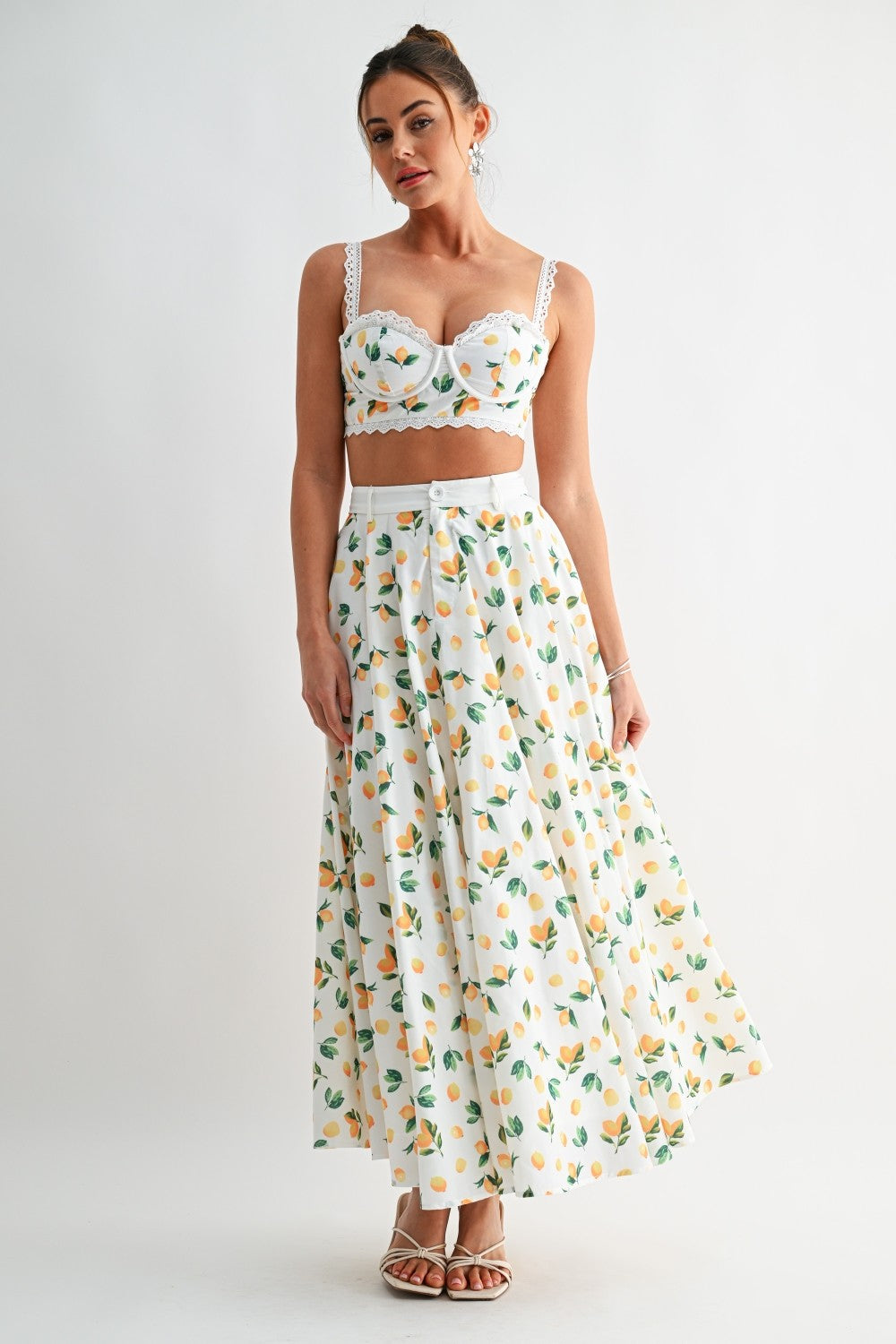Effortless style meets everyday comfort in the Citrus Bloom Skirt. Its flowing, airy silhouette pairs perfectly with functional pockets and an easy front button-zipper closure. From vacation adventures to casual brunches and outdoor fun, this playful yet elegant piece is your warm-weather wardrobe essential. Make it a set with the matching top!