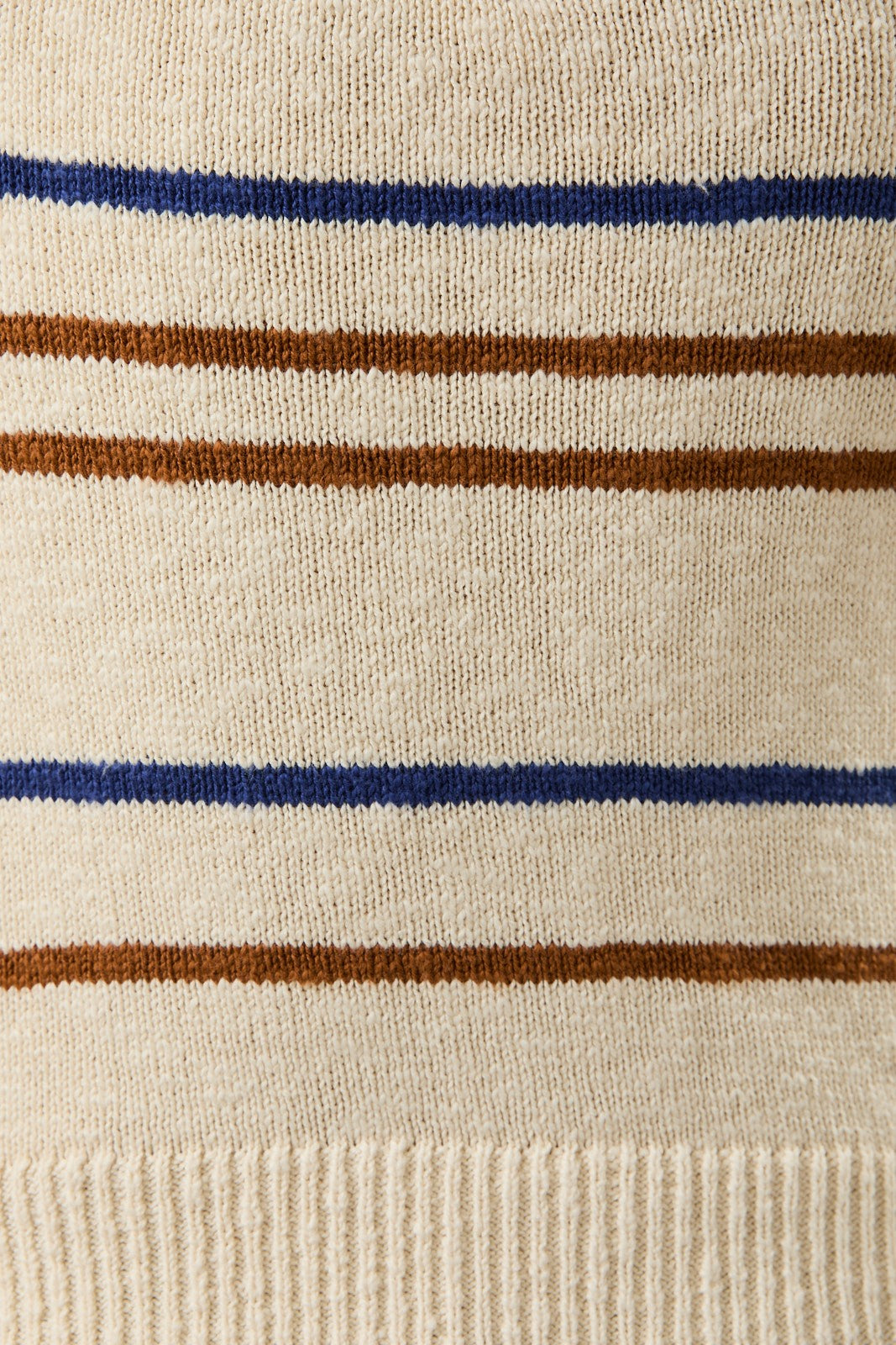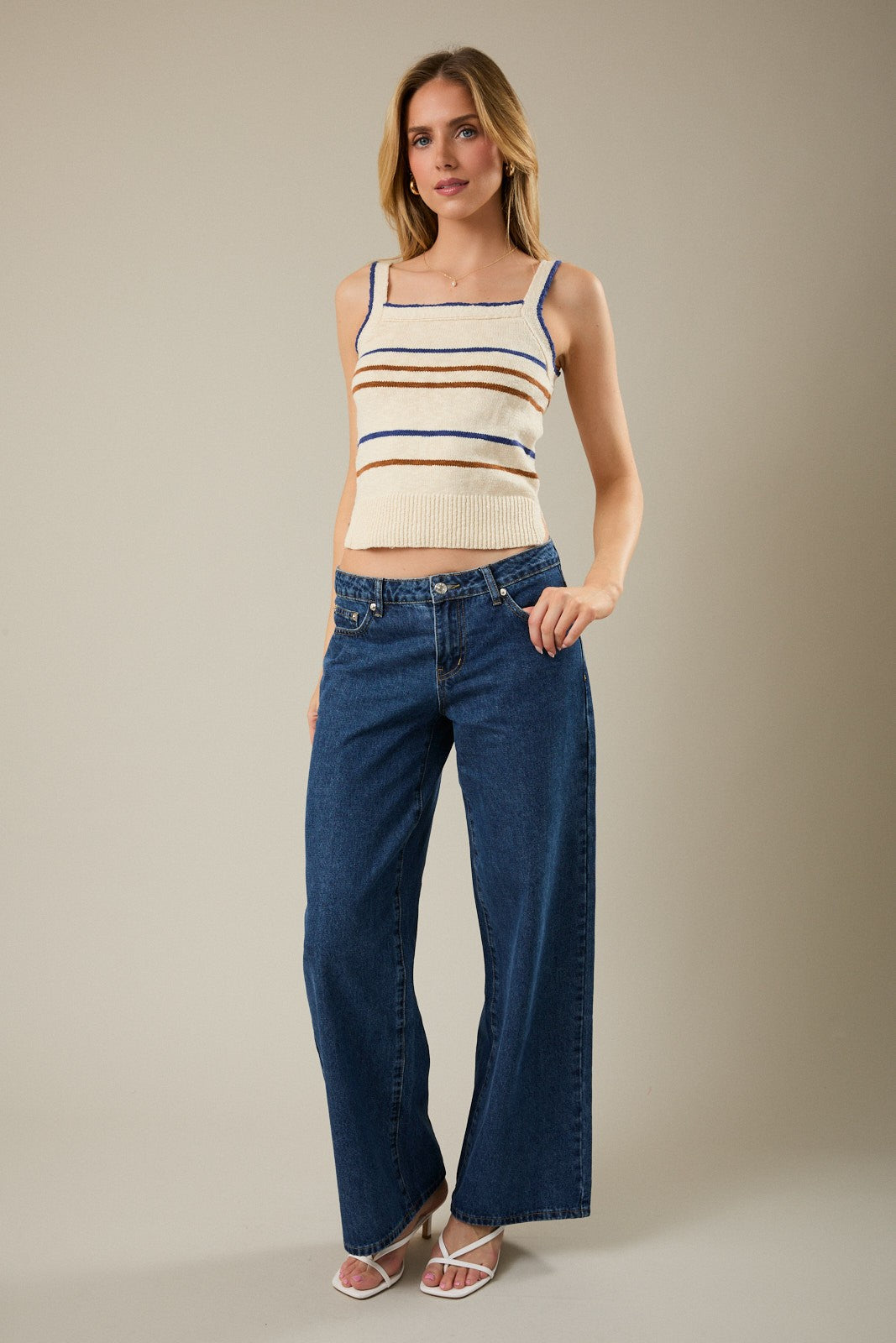 Layer it up or wear it solo—this sleeveless striped tank brings effortless style to any outfit. The classic stripe pattern pairs with a cozy sweater knit for a look that's equal parts preppy and relaxed. Perfect for transitional weather, it works over a crisp button-up or under your favorite jacket. Versatile, comfortable, and endlessly mixable.