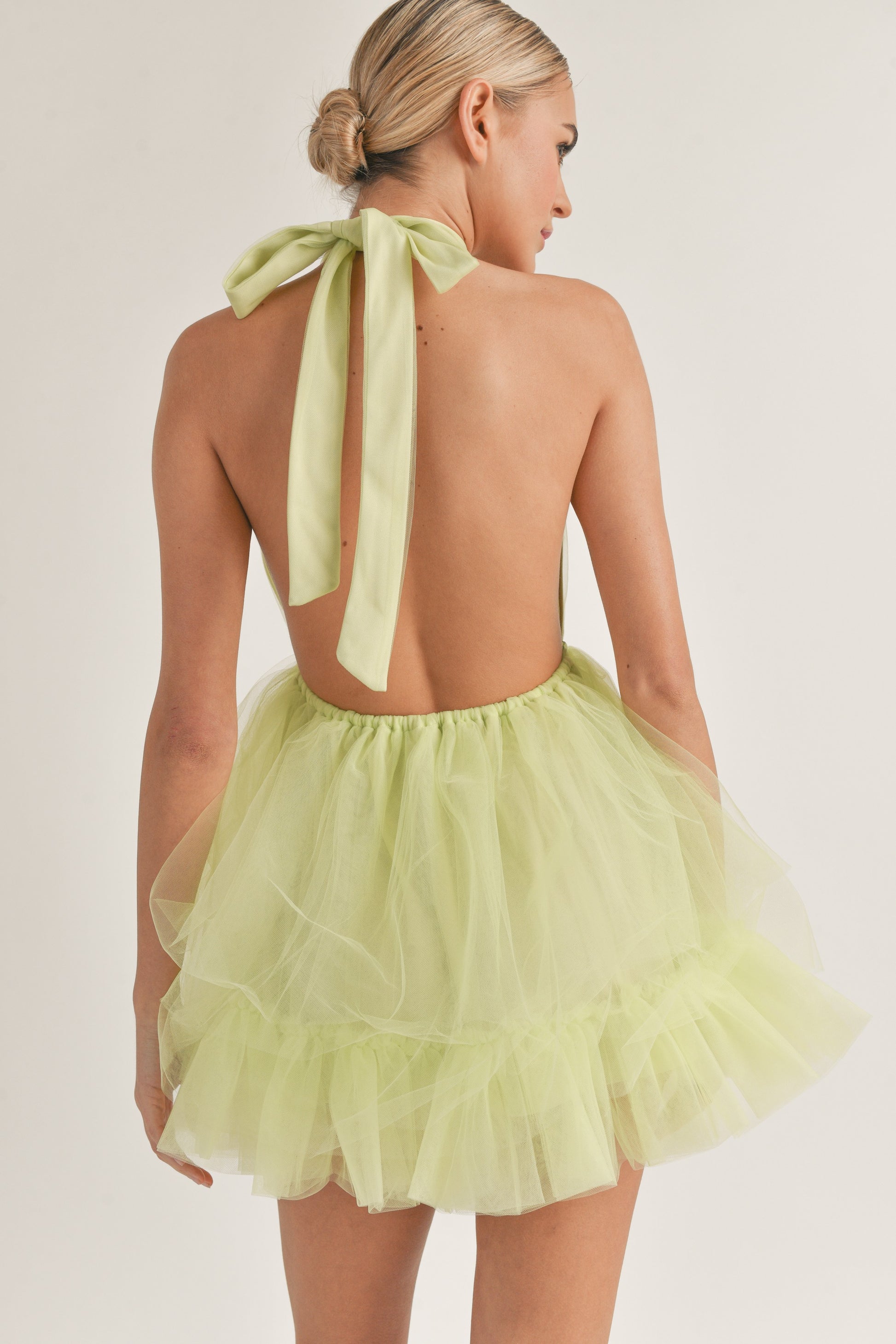 The Tessa Mini Dress is your go-to piece for turning heads at any occasion. This flirty halter design features an open back that's equal parts cheeky and sophisticated, while layers of delicate tulle create movement and dimension with every step. Perfect for date nights, parties, or whenever you want to feel effortlessly fabulous. The mini length keeps things fun and youthful, making this dress a versatile addition to your wardrobe!