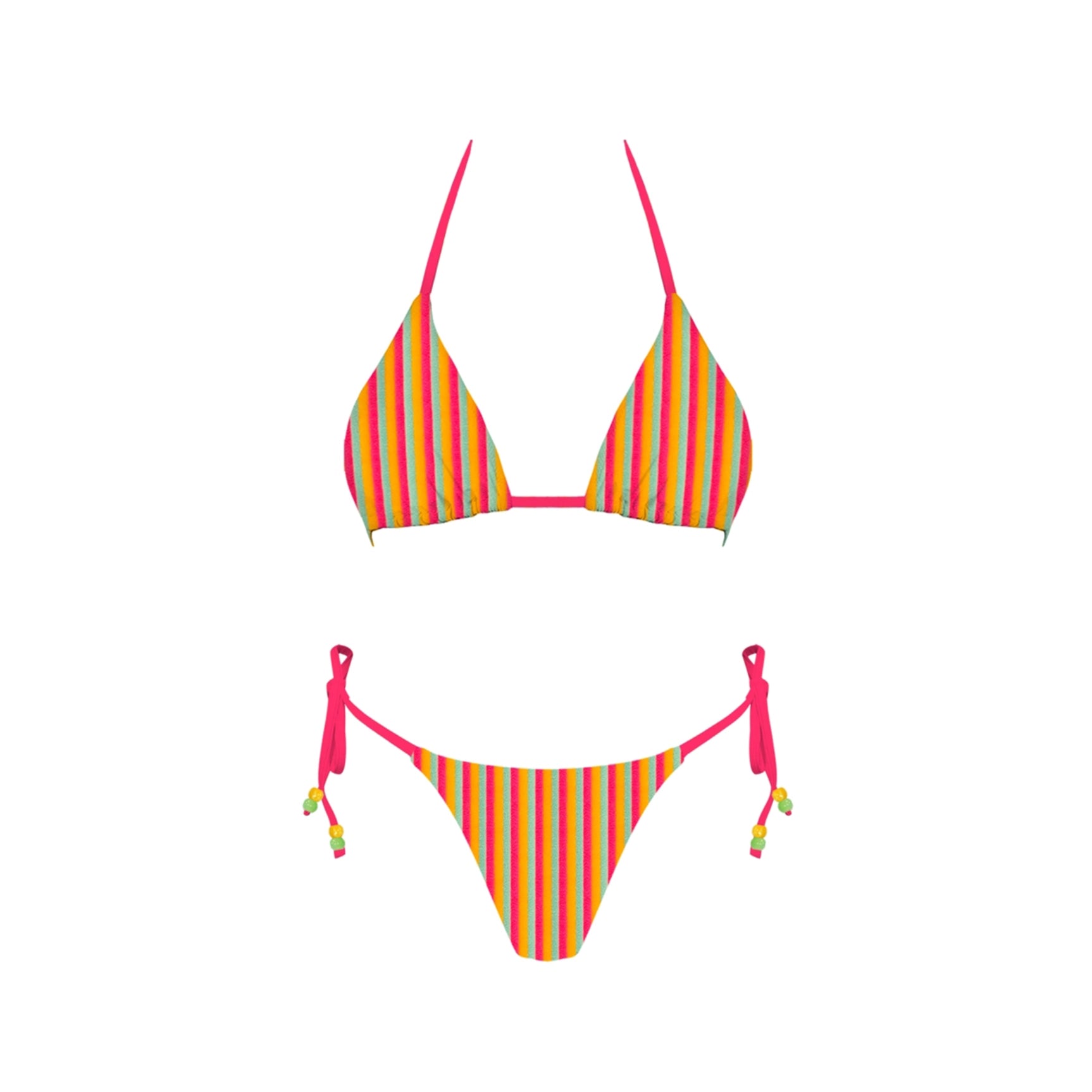 Add a splash of fun to your swimwear with these Wonderland Bikini Bottoms. Featuring playful side ties adorned with charming bead accents, they bring a touch of whimsy to your beach look. The vibrant sherbet colors brighten your day and complement any sunny adventure perfectly.